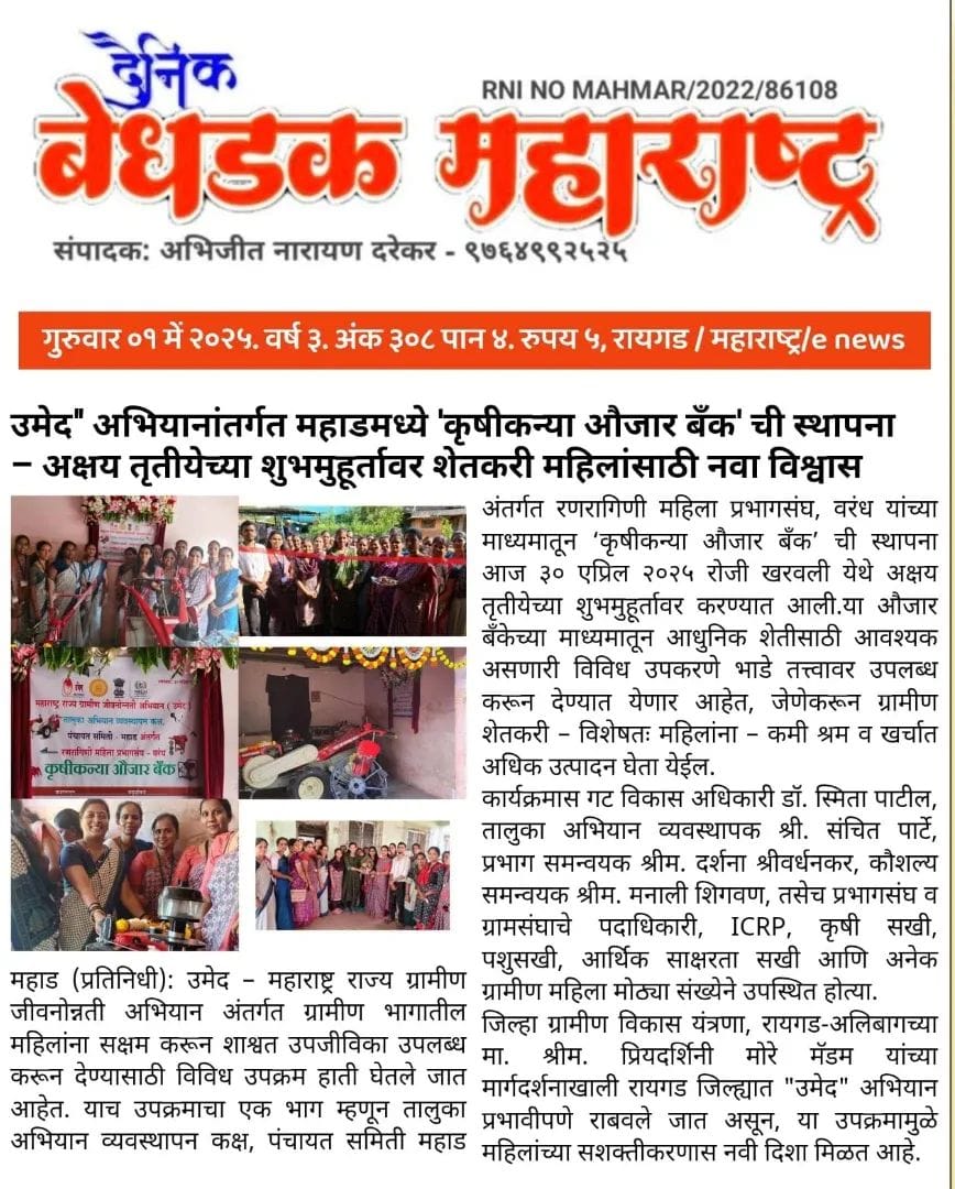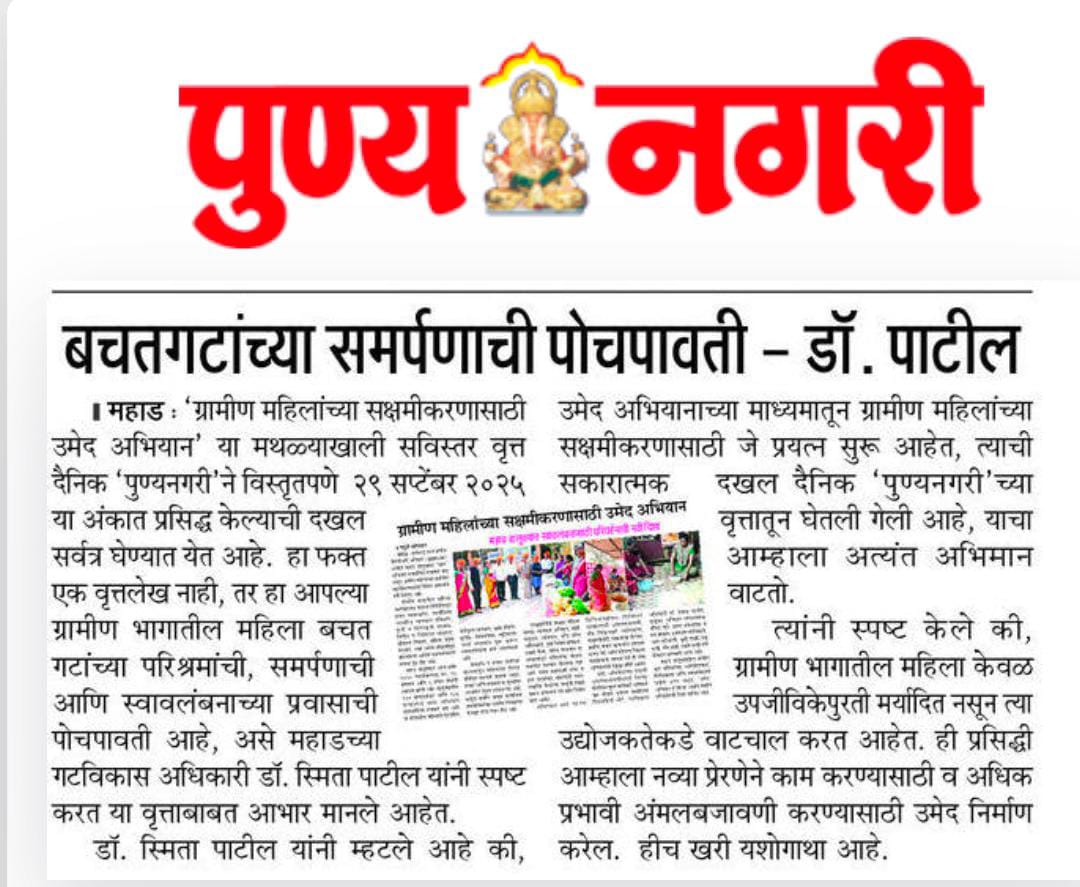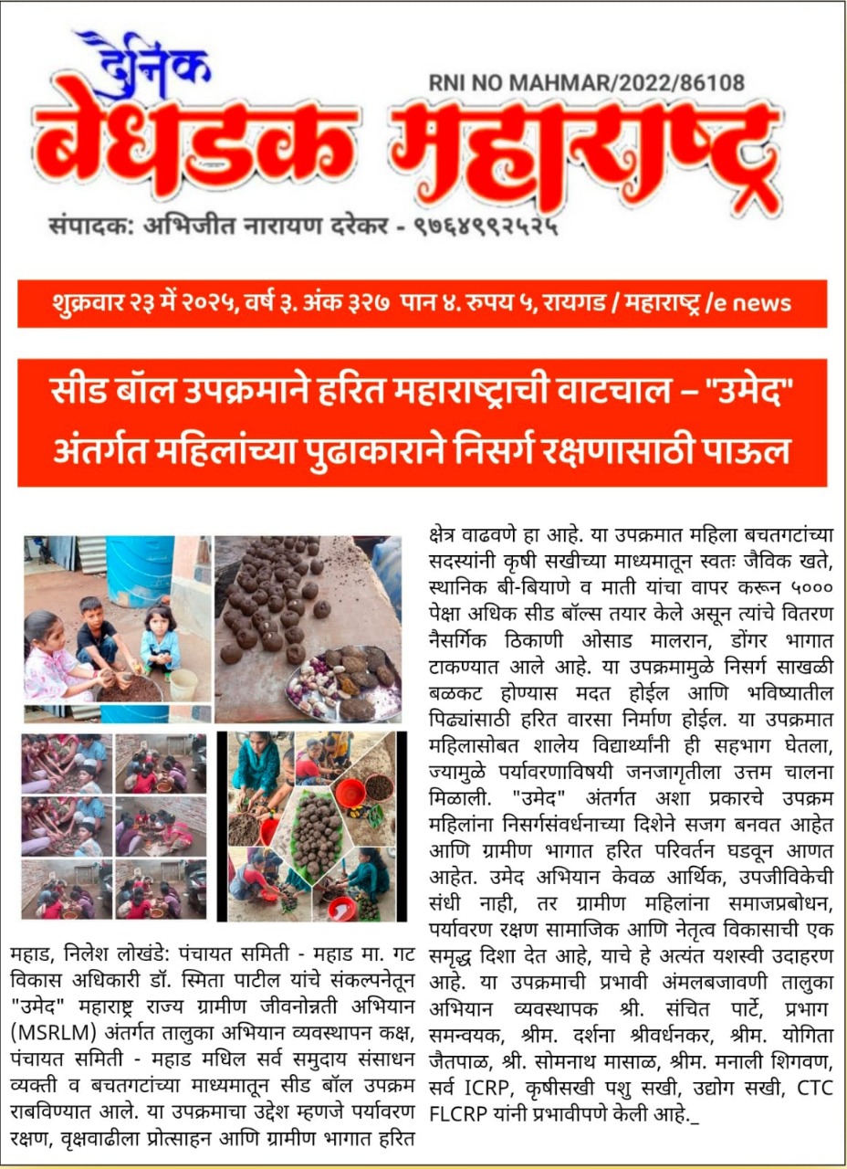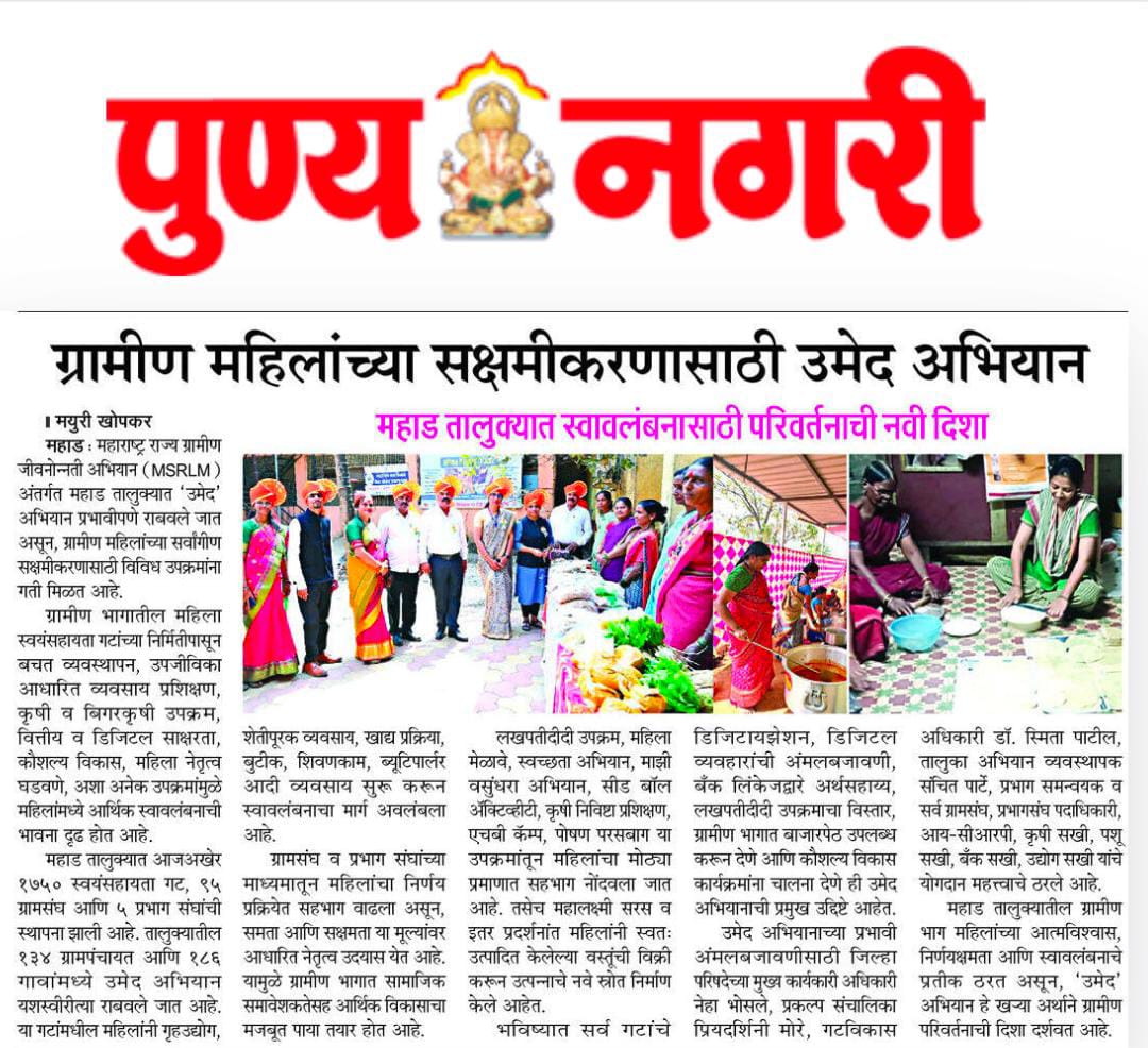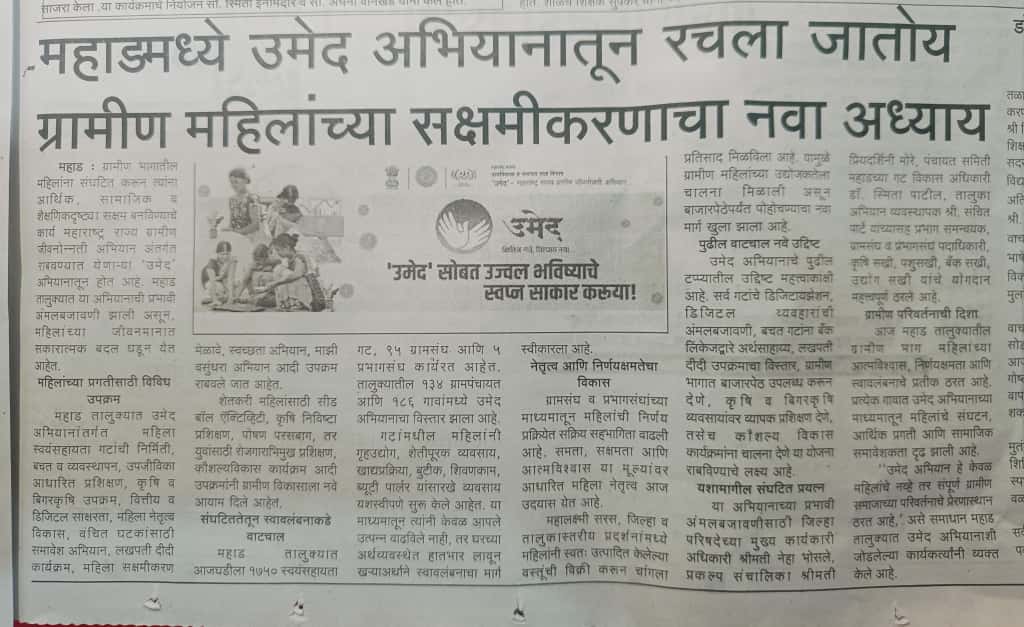 उमेद - महाराष्ट्र राज्य ग्रामीण जीवनोन्नती अभियान तालुका अभियान व्यवस्थापन कक्ष, पंचायत समिती - महाड
