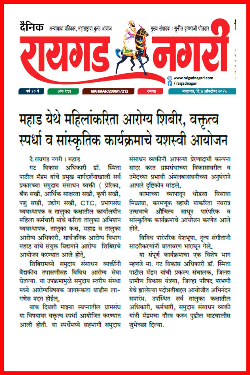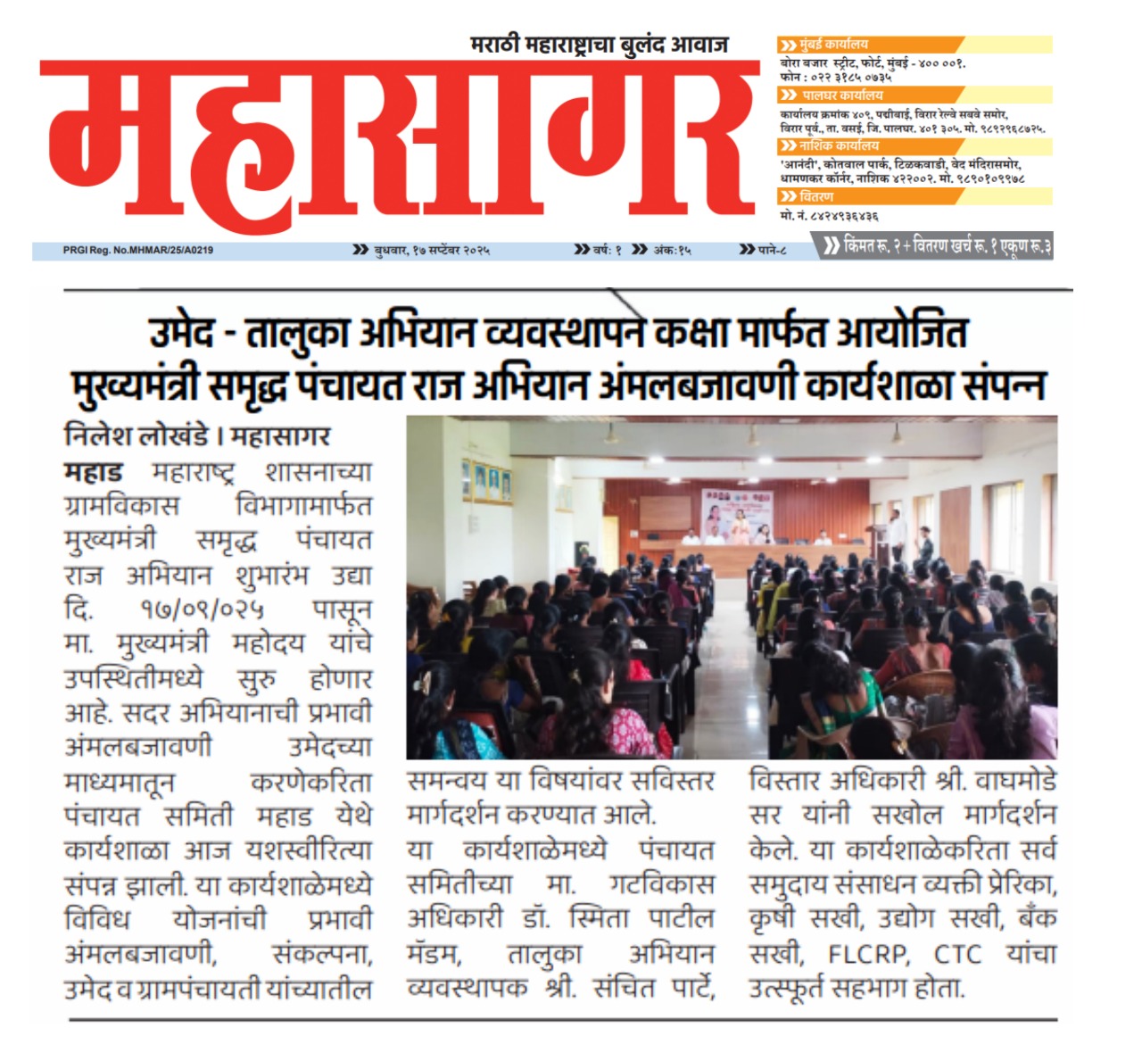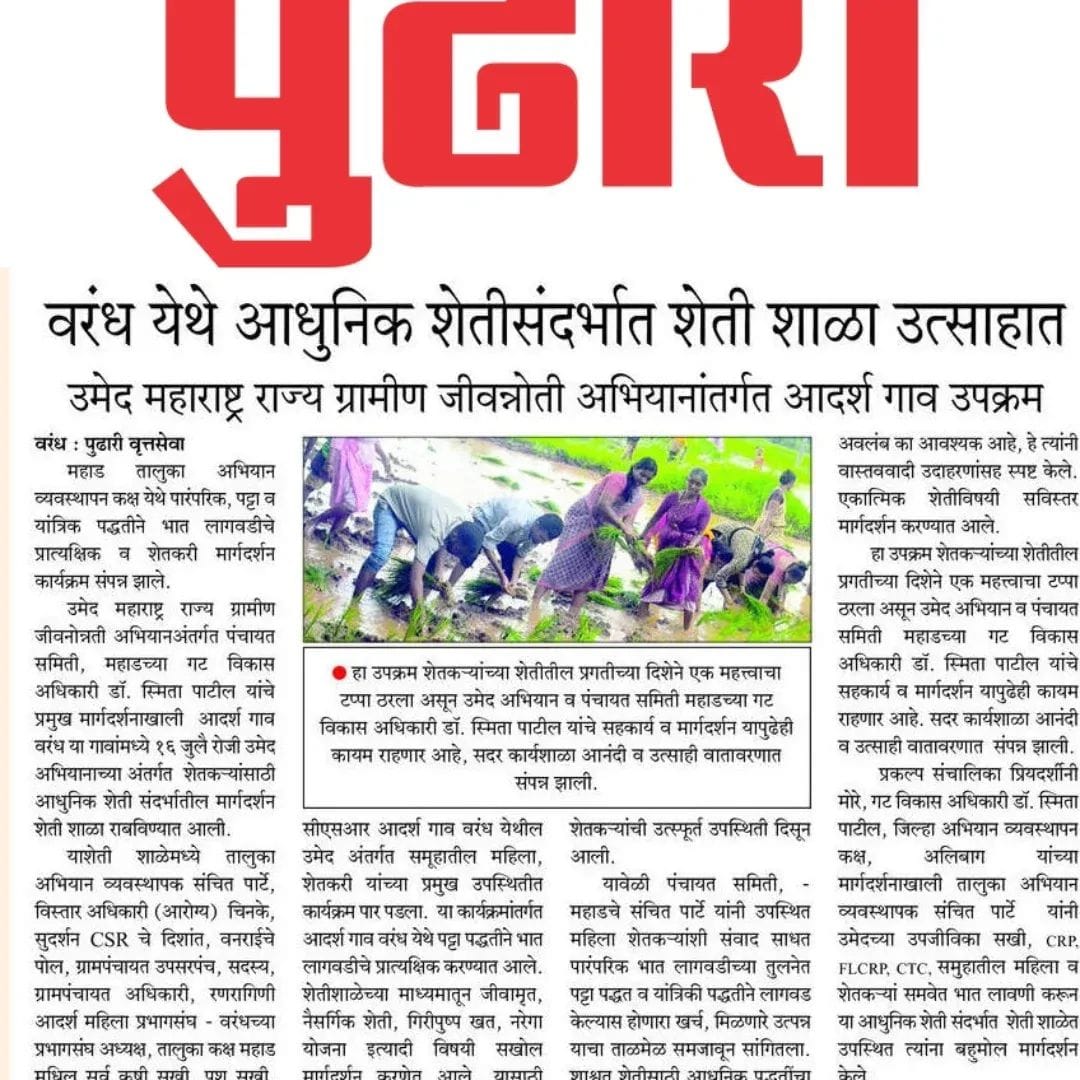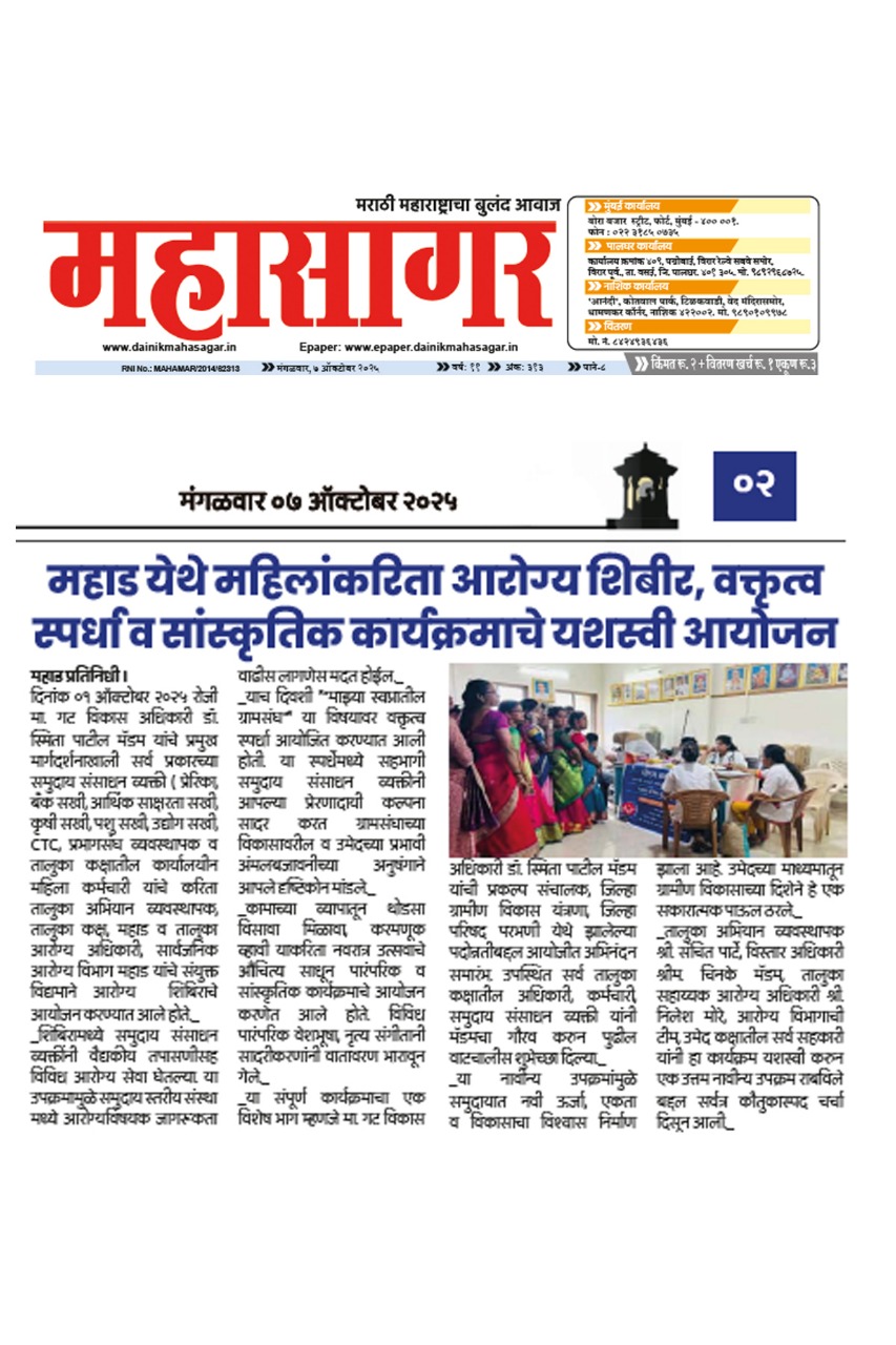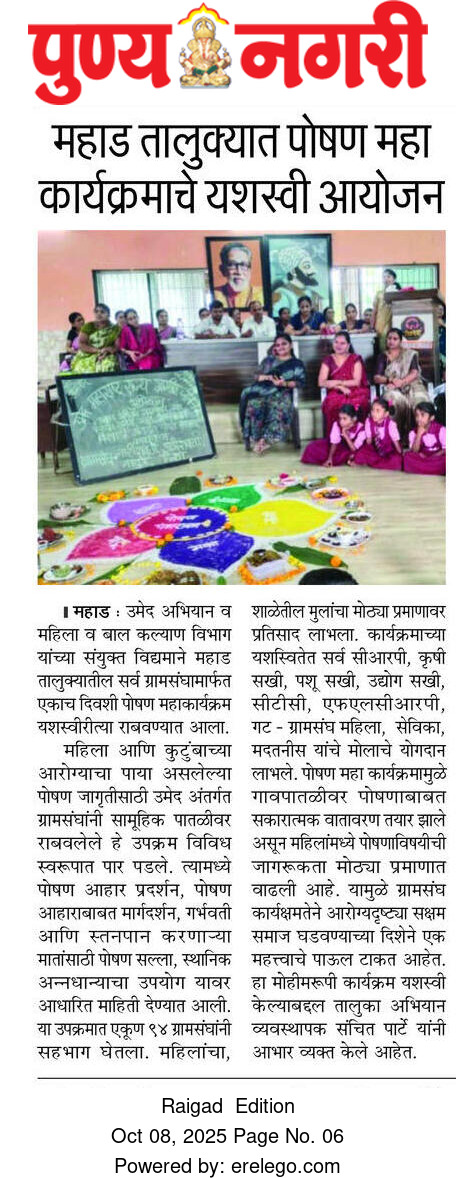 उमेद - महाराष्ट्र राज्य ग्रामीण जीवनोन्नती अभियान तालुका अभियान व्यवस्थापन कक्ष, पंचायत समिती - महाड