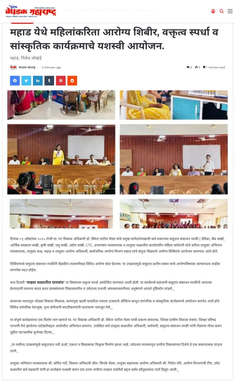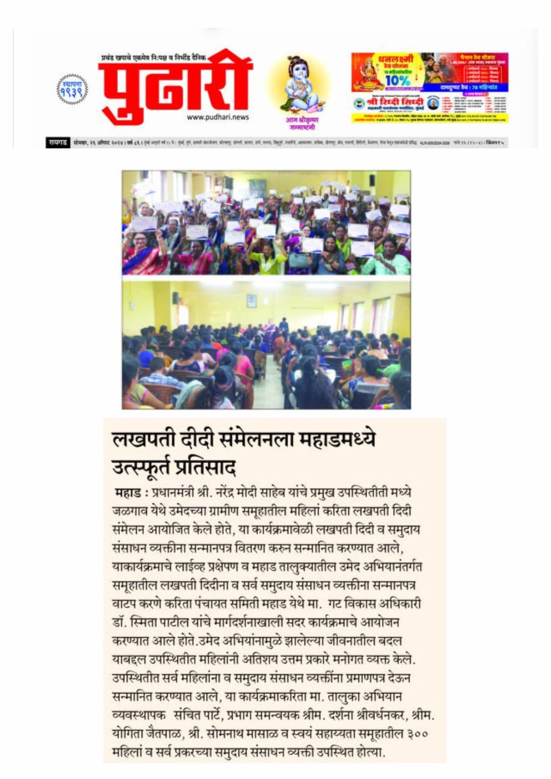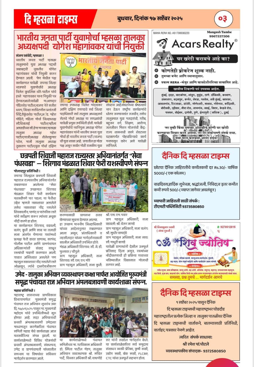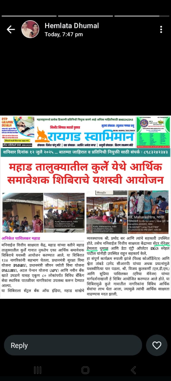 उमेद - महाराष्ट्र राज्य ग्रामीण जीवनोन्नती अभियान तालुका अभियान व्यवस्थापन कक्ष, पंचायत समिती - महाड